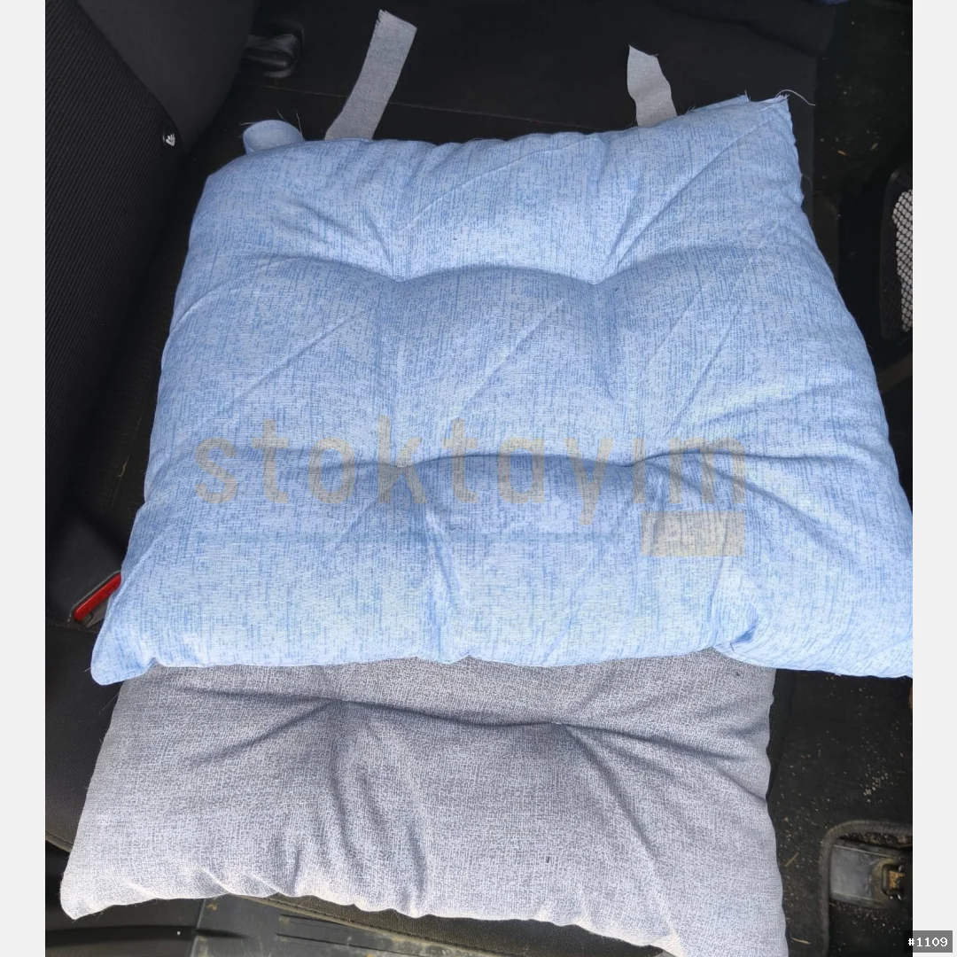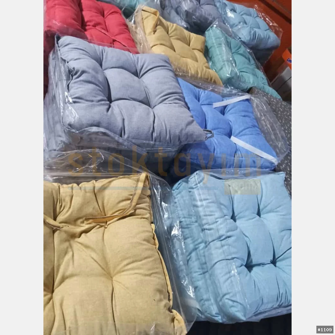 Karışık renk ve desenlerde elyaf dolgulu pamuklu kumaş sandalye minderi.
