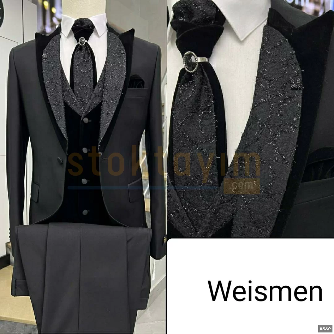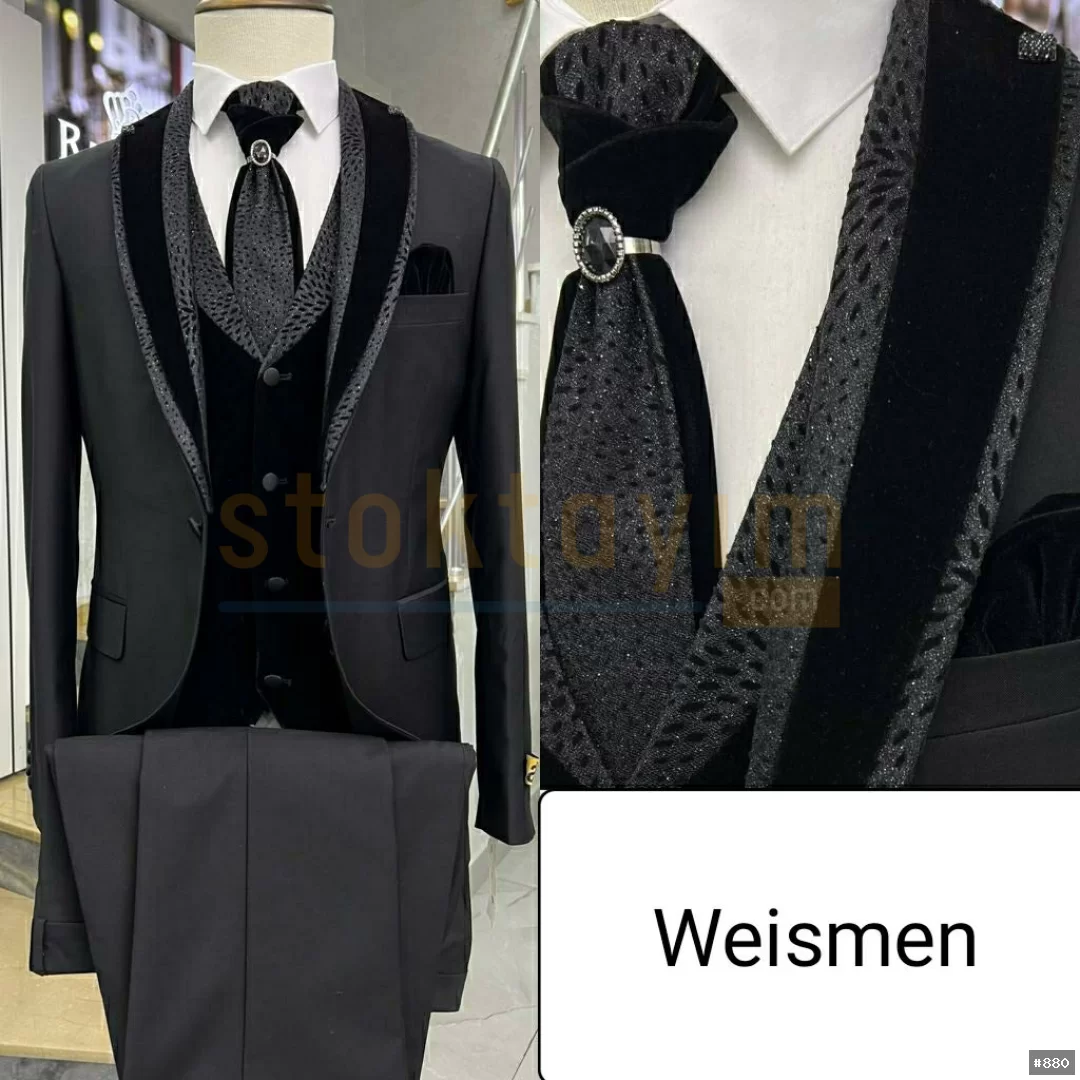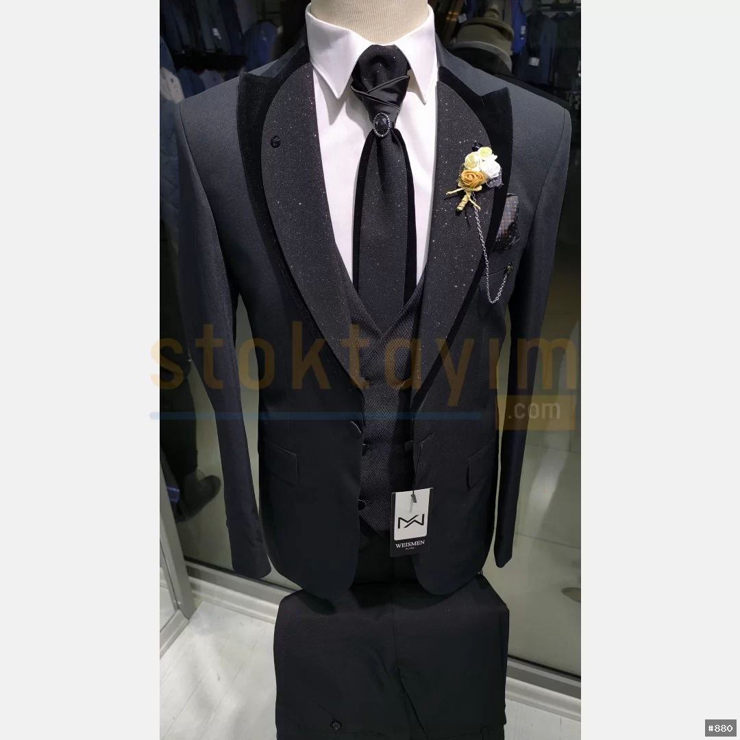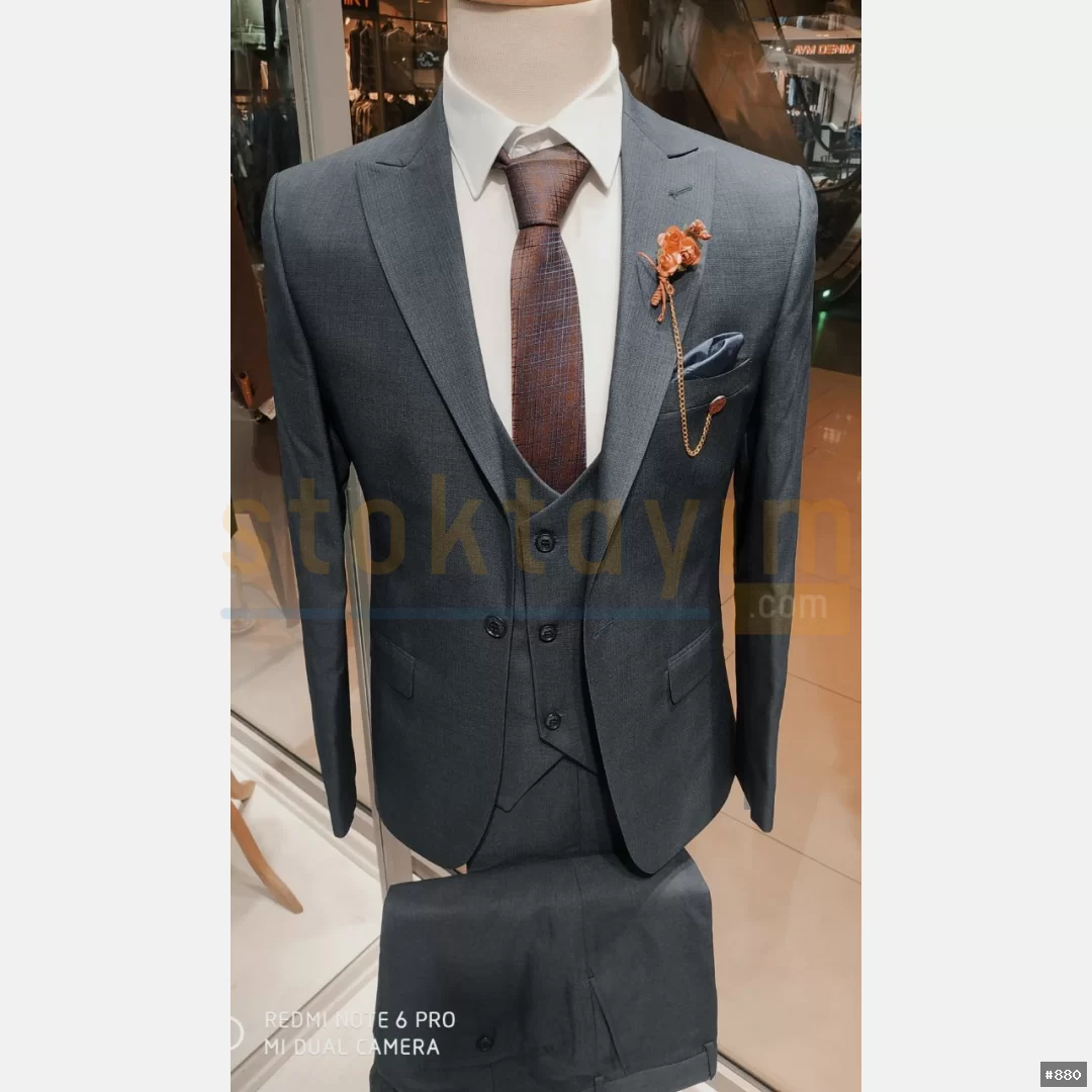 Armürlu ve çizgili düz yelekli swit takım elbise