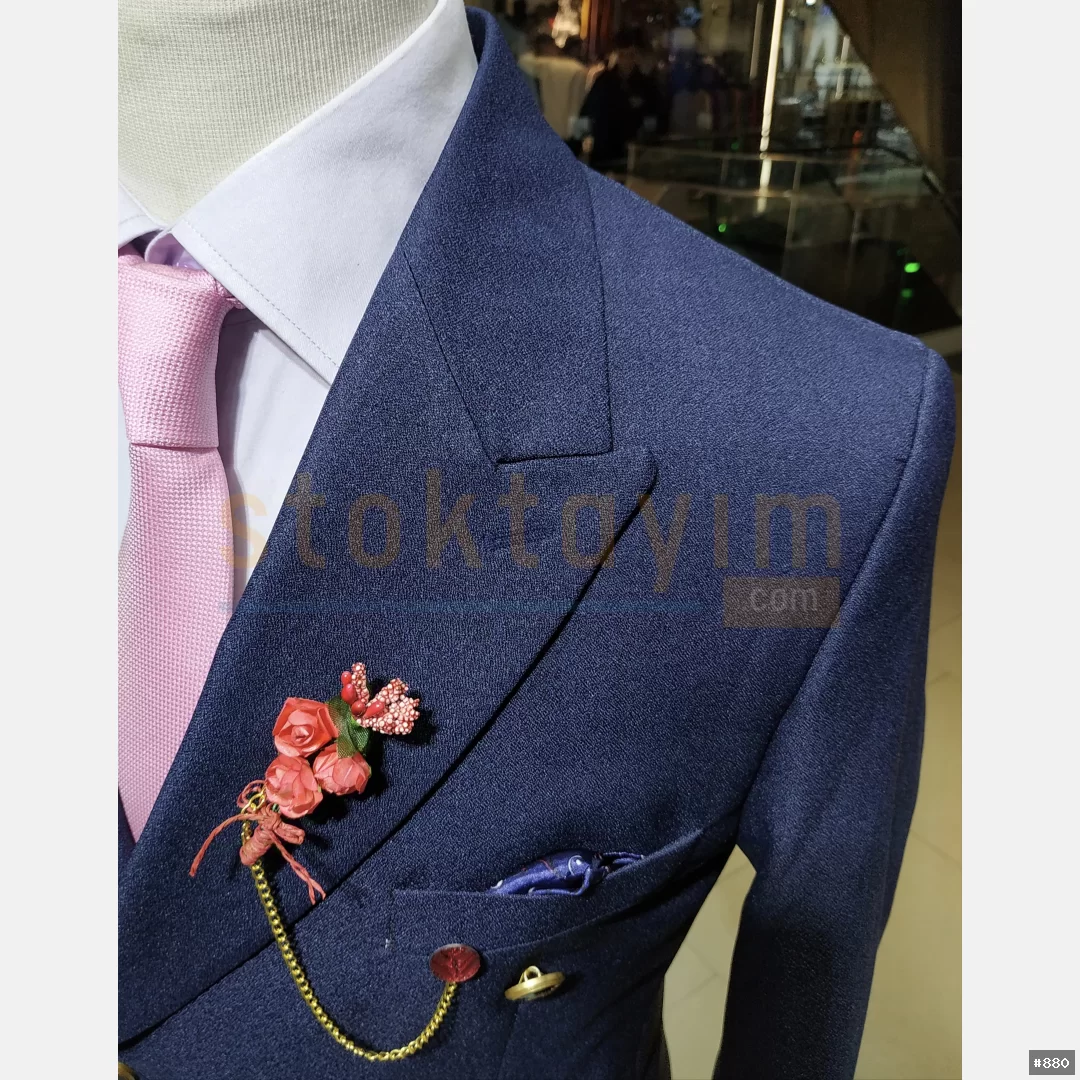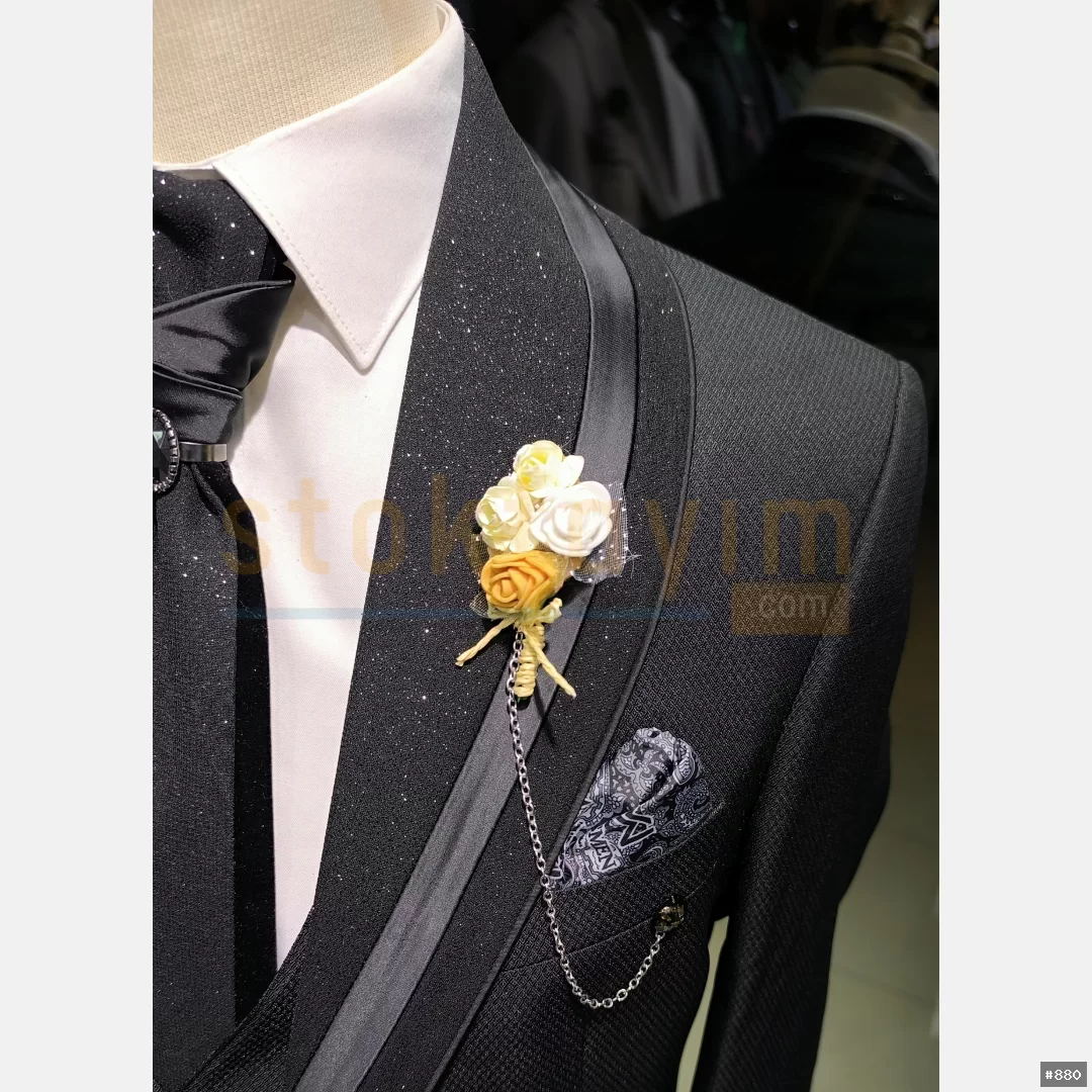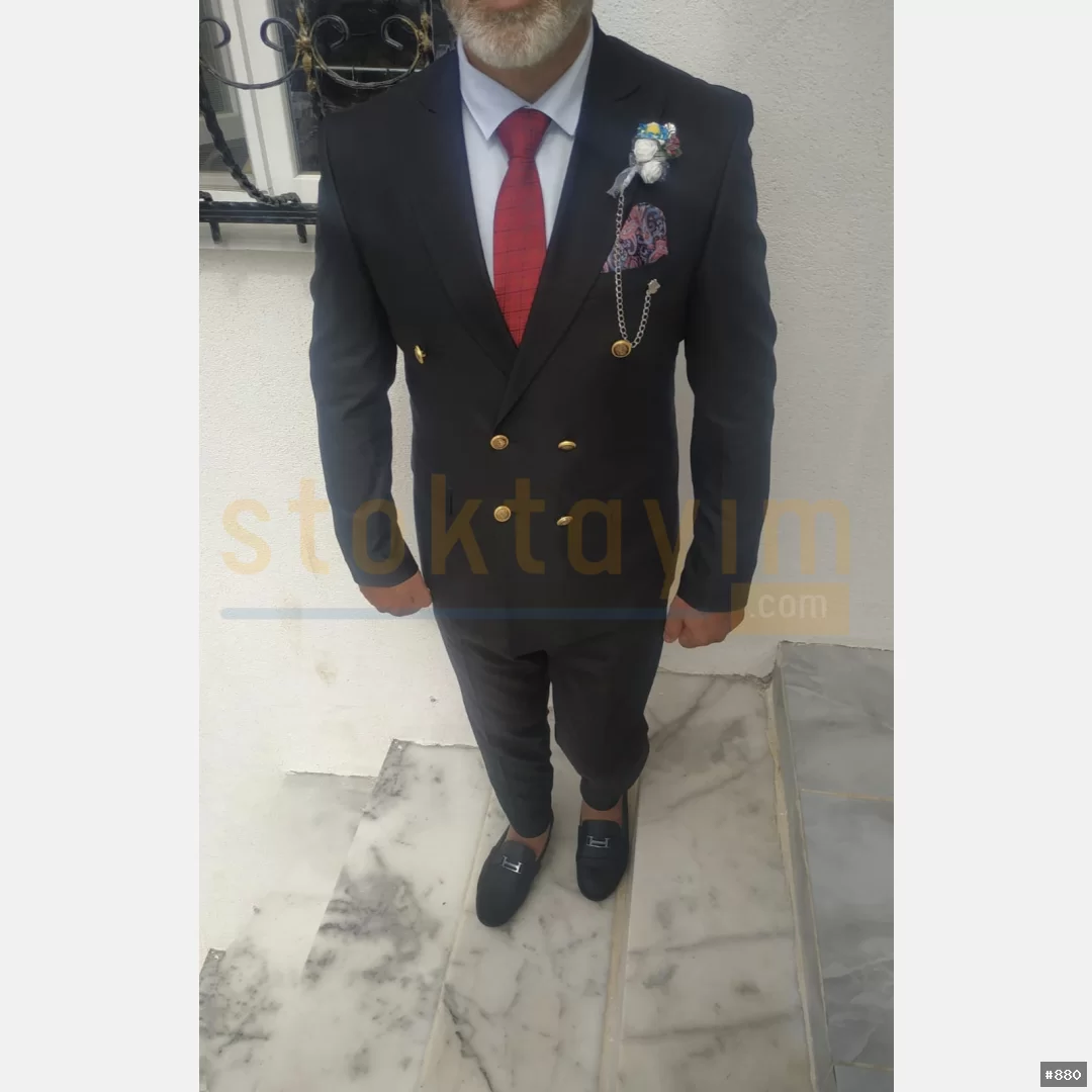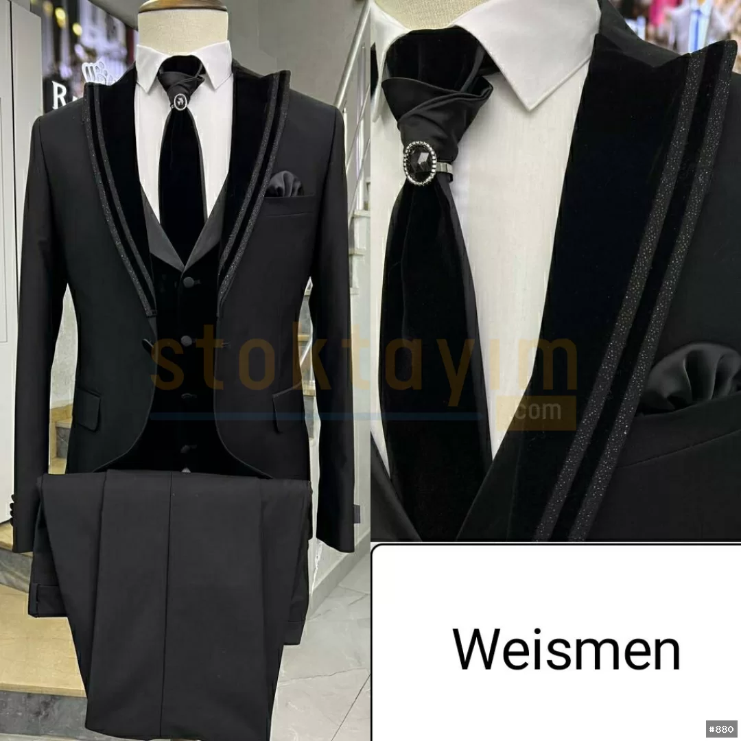 Armürlu ve çizgili düz yelekli swit takım elbise